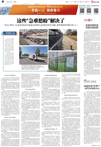 道路设施建设与市民生活息息相关。2024年,“出击·帮办”专刊刊发《城阳区荣阳路:交付延期‘堵’住小区门》》《走着走着,怎么没有道了》《道路待整修 居民出行难》等报道,以及“科苑经三路(株洲路至滁州路路段)缺少人行横道”等市民留言,反映荣阳路施工进展缓慢、重庆南路(南京路至淮安路路段)人行道建设滞后、胶州市李哥庄镇沽祥路破损、崂山区科苑经三路人车抢行等问题。相关部门积极行动,项目建设明显提速。