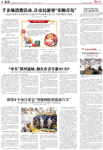 ■青岛今年将深入推进国际消费中心城市建设、持续开展“乐购青岛”促消费系列活动,谋划推出“春夏秋冬”四季千余场消费活动,联合大型商超、综合体、商业街、商圈做到“季季有主题,月月有精彩,周周有活动”
