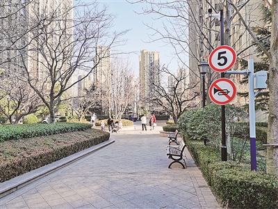 ■西海岸新区海信阳光里小区出入口设置限速禁鸣标识。 梁 超 摄