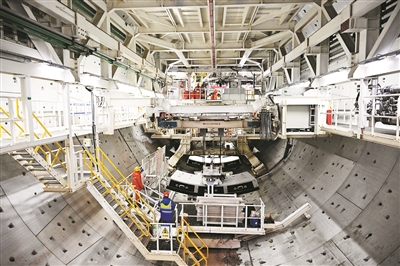 节后复工以来,青岛胶州湾第二隧道工程按下“快进键”。各参建单位严格落实安全生产要求,科学管控施工进度,克服地质条件复杂等不利因素,成功穿越多条海底破碎带,为实现一季度“开门红”奠定坚实基础。图为在南线主隧道盾构段,中铁十四局建设者在海平面下73米进行管片拼装作业。