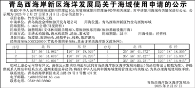 青岛西海岸新区海洋发展局关于海域使用申请的公示
