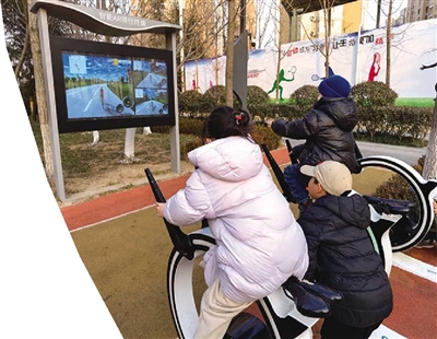 ■在公园里,低幼版健身设施能吐泡泡、放音乐,深受孩子们的喜爱。