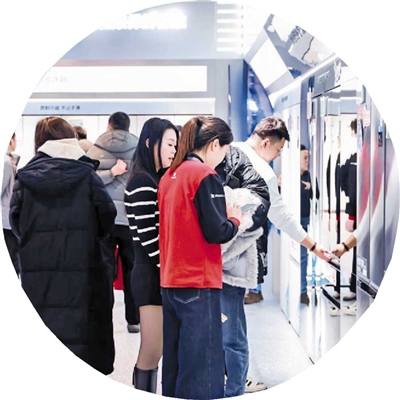 ■市民在青岛京东MALL选购冰箱等家电产品。