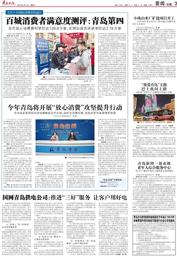 本报3月14日讯 14日上午,市政府新闻办召开“强信心 亮举措 促发展”主题系列发布会,介绍青岛“优化消费环境,助力提振消费”情况。去年以来,市场监管部门积极发挥职能作用,通过强化放心消费引领、规范消费市场秩序、构建长效监管机制等举措,推动全市消费环境持续向好,助力提振消费信心和预期。在中消协最新发布的2024年全国百城消费者满意度测评中,青岛排名全国第四,连续6年位居全省第一、全国前列。