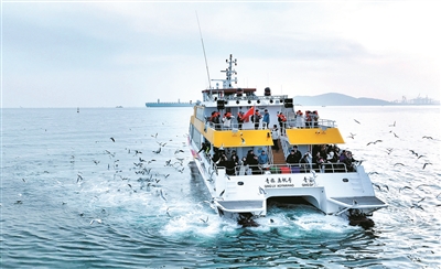 “今天一出火车站就直奔游船而来,没想到在大海上看海鸥如此壮观,太让人难忘了。”济南游客张女士所体验的游船,是青岛旅游集团推出的“魅力三湾·追鸥逐浪”航线产品。围绕冬日观鸥这一经典城市景观,青岛旅游集团推出了“追鸥逐浪”海上旅游航线。这个“海鸥季”,青岛旅游集团又将产品全面升级,除了经典的“魅力三湾·追鸥逐浪”,还在多个产品中融入观鸥体验,极大提升了市民游客在冬季和早春“海上看青岛”的热情。