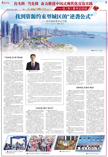 在“青岛号”的航海图上,清晰地描绘出了市南突围的航线。“市南要在全方位扩大内需、发展现代服务业、强化科技创新引领、优化营商环境、加强和创新社会治理上‘作示范、见实效’,我们要充分发挥中心城区的优势,主动扛起责任和担当,在新时代浪潮中扬起风帆,全速破浪前行。”在接受本报记者专访时,市南区委书记王锋给出发力方向。