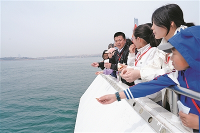 本报3月23日讯 23日,“小草情牵红色海岸线”青少年爱国主义教育公益活动在青岛奥帆中心再启航。170名青少年在爱心人士的陪伴下,手牵手登上游轮,听青岛光荣历史,游前海美丽风景,在红色海岸线上接受爱家乡、爱祖国教育洗礼。
