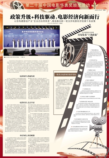 127年前,摄影师在青岛拍摄了中国最早的纪录片之一;118年前,中国现存最早的商业电影放映场所——水兵俱乐部开始放映电影;90年前,中国电影艺术史上第一部现实主义力作《劫后桃花》在青岛拍摄。早在2013年,青岛投资105亿元建设东方影都影视产业园,作为国内第一座工业化电影基地,园区集聚1500多家电影企业,逐步形成了“中国电影青岛制造”产业品牌。在电影产业发展过程中,青岛始终坚持政策引导,2015年以来,先后制定实施了多轮电影产业政策,累计兑付支持资金2.1亿元。新一轮支持电影经济发展的“十条政策”,对产业链条的扶持更加完善,扶持范围从生产端扩大到衍生品开发和文旅开发,充分发挥电影对经济的带动拉动效应,也让业界对青岛电影产业充满期待。