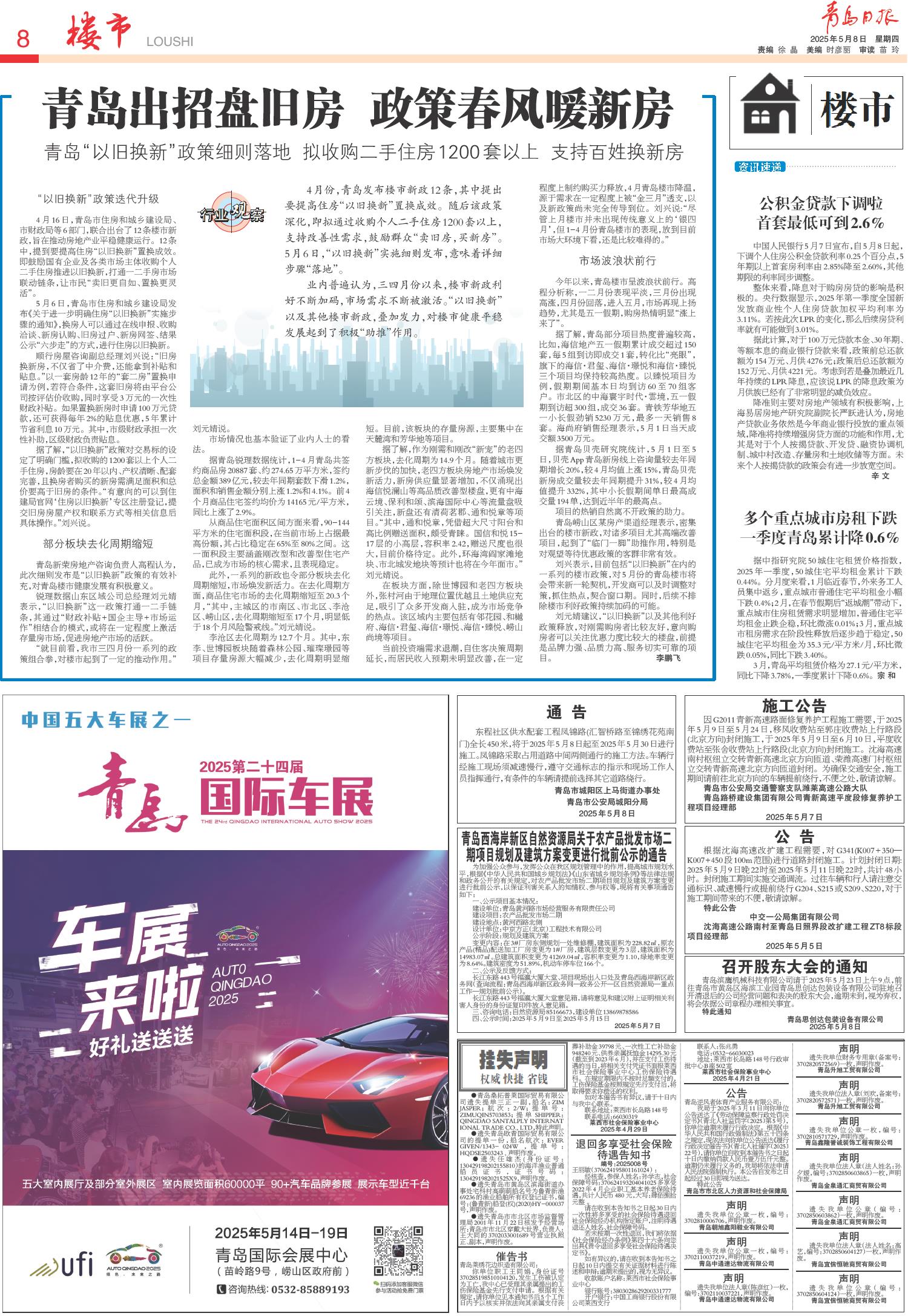 01 首版 02 要闻 03 青报聚焦 04 国内·国际 05 城事·专题 06 幸福市北 07 幸福市北 08 楼市