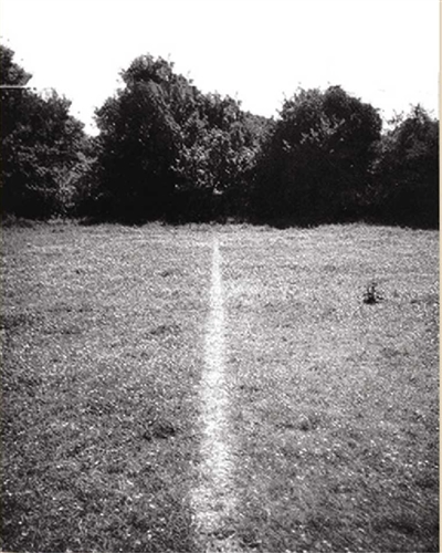 ■1967年,理查德·朗完成了他的第一部“行走作品”——《走成的线》。此作是一张照片,拍的是英国一片田地中被踩踏出的一条小道,而这一条路径痕迹是这位英国大地艺术代表人物沿着直线一步步踩踏而成。