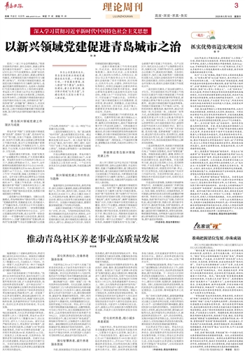 党的二十届三中全会明确提出,“探索加强新经济组织、新社会组织、新就业群体党的建设有效途径”。2024年,习近平总书记对社会工作作出重要指示,强调“突出抓好新经济组织、新社会组织、新就业群体党的建设,不断增强党在新兴领域的号召力凝聚力影响力”。抓好新兴领域党的建设,增强党在新兴领域的号召力凝聚力影响力,是基层党建的重要组成部分,也是深入推进新时代党的建设新的伟大工程的现实需要。青岛深入学习贯彻习近平总书记重要指示批示精神和党中央重大决策部署,以体制机制改革为牵引,以增强新兴领域党组织政治功能和组织功能为主线,坚持组织连“新”、服务暖“新”、治理融“新”,精准发力、攻坚突破,推动新兴领域党建工作在全省走在前、做示范,以新兴领域高质量党建引领高质量发展,助力现代化治理样板城市建设再上新台阶。