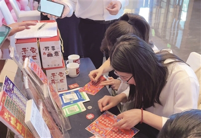 ◀▲云上海天登记处,福彩展位吸引众多年轻人购彩。