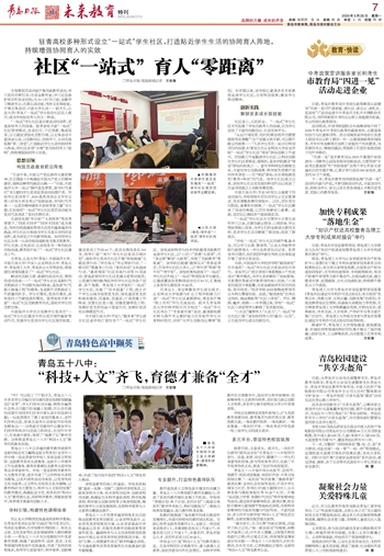 到山东大学物理实践基地探索科学奥秘;在青岛市党史纪念馆“沉浸式”探寻党史记忆、传承红色精神;在学校聆听两院院士、知名企业家、文化名家等社会各领域领军人物的精彩分享……青岛五十八中充分挖掘校内外优质教育资源,构建了涵盖科学、法律、党史、文化等领域的特色校外实践基地,形成了系统的课程体系,培育学生家国情怀、科学素养、创新精神,形成了校内校外协同“科技+人文”特色育人格局。