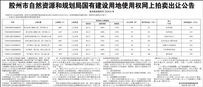 胶州市自然资源和规划局国有建设用地使用权网上拍卖出让公告