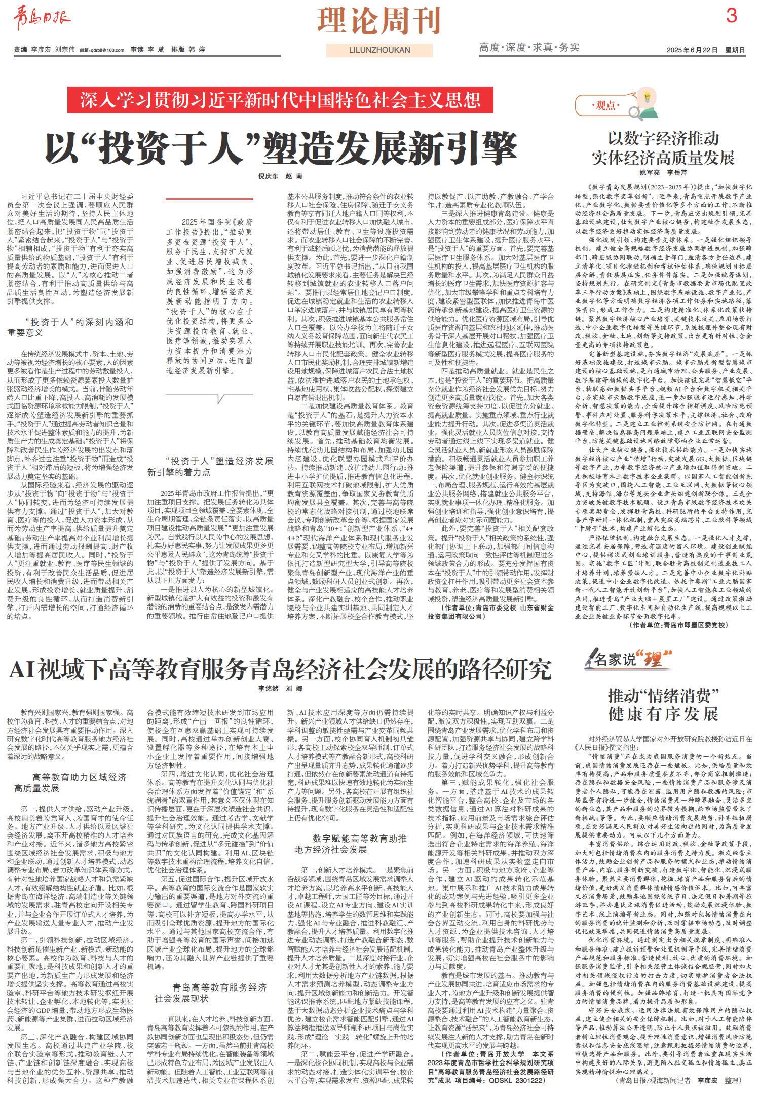 以“投资于人”塑造发展新引擎