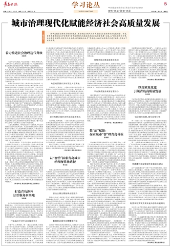 城市是国家治理体系的重要载体,其治理能力现代化水平直接关系着经济社会发展质量。日前,青岛市委党校相关学者围绕“城市治理现代化赋能经济社会高质量发展”主题,从“制度创新为引擎,法治建设为保障,要素优化为支撑,数智赋能为抓手”等角度,为城市治理现代化建言献策,形成如下理论文章。