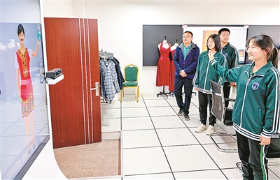 ■青岛高新职业学校的学生使用人工智能设备设计服装。