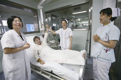 “你们的治疗无可挑剔!”2008年8月7日,意大利帆船代表队成员克拉迪奥突然出现心源性猝死,被紧急送往市立医院。抢救小组迅速连续进行4次电除颤、冠状动脉造影及支架植入,从发病到手术结束,仅用了不到3个小时。回国前,克拉迪奥特地写下感谢信向医院致谢。