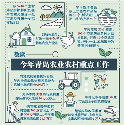 今年青岛农业农村工作确定“路线图”“任务书”,将提升高线,争创一批全国制高点;夯实中线,抓好农业农村高质量发展工作落地落实;守牢底线,当好经济社会发展的“压舱石”