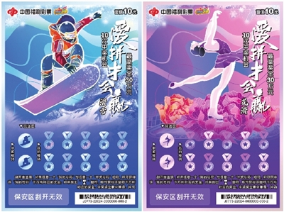 刮刮乐新票“爱拼才会赢”是为宣传2022年北京冬奥会而设计的一套纪念形式的4联彩票。彩票以“爱拼才会赢”为主题,设计了4个冰雪项目,画面精美且生动,充分展现了友谊、团结、公平的奥运精神。