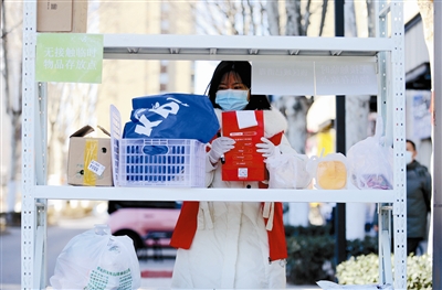 工作人员的细心,给了小区居民更多安心。打篮球、打羽毛球、散步、玩滑梯……小区内封控区外的居民可以下楼自由活动,工作人员在小区门口为他们设立了一处无接触临时物品存放点。存放点外,志愿者认真清点快递等物品,及时喷洒消毒,细致标注楼号、单元等信息;存放点内,小区居民依照标注信息,及时取走自己的物品,避免物品堆积。
