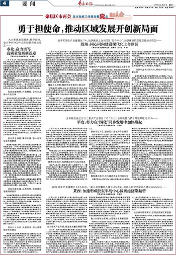 2月25日上午,胶州市第十八届人民代表大会第一次会议开幕。胶州市委副书记、代市长于冬泉所作的《2022年胶州市政府工作报告》中提出,今后五年,胶州市坚持把“同心同向建设现代化上合新区”作为中心任务,突出“全域统筹、一核引领、三区联动”,全力建设极具“国际范”的上合示范区核心区、极具“现代范”的胶东临空经济示范区、极具“活力范”的品质城市示范区、极具“生态范”的乡村振兴齐鲁样板示范区。力争到2026年,高质量完成“十四五”各项目标任务,主要经济指标增速保持青岛前列,产业结构更趋优化,城乡区域发展更为均衡,生态环境质量持续向好,共同富裕迈出坚实步伐,社会大局更加和谐安定。