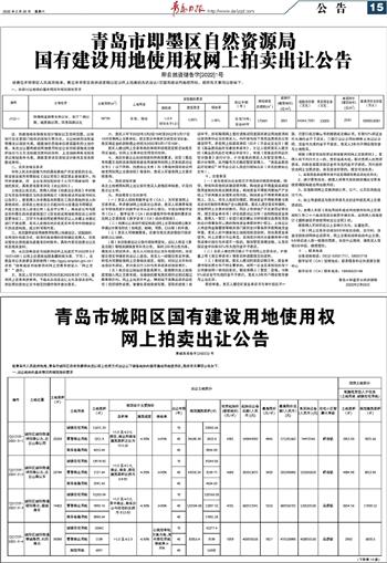 经青岛市人民政府批准,青岛市城阳区自然资源局决定以网上拍卖方式出让以下储备地块的国有建设用地使用权。现将有关事项公告如下: