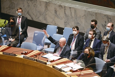 这一草案由美国和阿尔巴尼亚向安理会提交,内容主要是“谴责俄罗斯对乌克兰的侵略”。安理会表决结果显示,俄罗斯投了否决票,11个国家投了赞成票,中国、印度、阿拉伯联合酋长国投弃权票。根据联合国宪章的规定,安理会决议草案获得通过至少需要9票赞成,并且安理会5个常任理事国俄罗斯、法国、英国、美国和中国中没有一个国家投否决票。