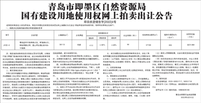 青岛市即墨区自然资源局国有建设用地使用权网上拍卖出让公告