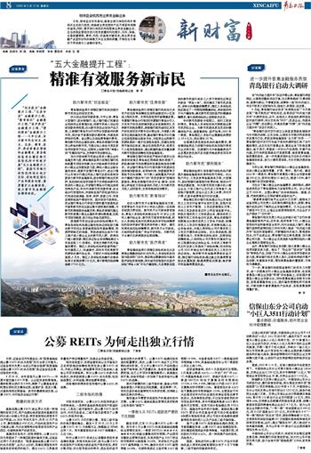 “创业就业”金融提升工程、“住房安居”金融提升工程、“教育培训”金融提升工程、“医疗养老”金融提升工程、“便利服务”金融提升工程……今年以来,针对新市民在创业、就业、住房、教育、医疗、养老等重点领域的金融需求,青岛银保监局在辖区银行保险机构中积极开展“五大金融提升工程”,鼓励引导银行保险机构结合地方实际,因地制宜强化产品和服务创新,高质量扩大金融供给,助力新市民金融服务精准有效。