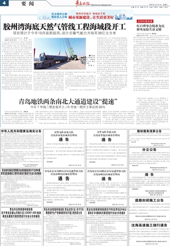 作为董家口LNG气源输青大通道的关键一环,胶州湾海底天然气管线项目预计于今年10月底前主体完工并投入使用,并将与“十四五”期间实施的董家口LNG码头项目、全域“煤改气”项目、大型燃气发电项目协同一体,构建起“清洁、低碳、安全、高效”的能源保障体系,为我市率先实现“双碳”战略目标提供“十足底气”,为城市提供强劲“能源引擎”。