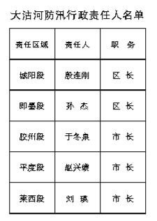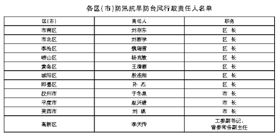 青岛市2022年度防汛抗旱防台风行政责任人名单