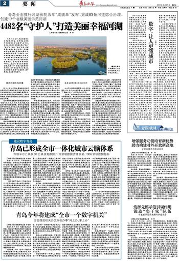 青岛全面推行河湖长制五年“成绩单”发布,完成83条河道综合治理,创建17个省级美丽示范河湖~~~