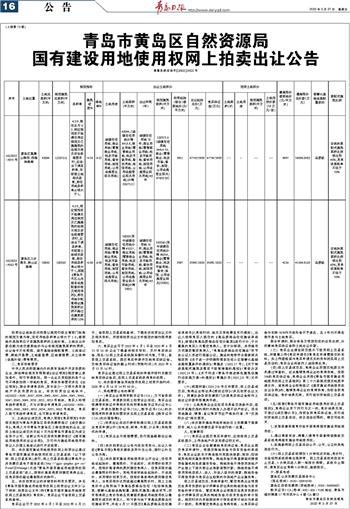 青岛市黄岛区自然资源局国有建设用地使用权网上拍卖出让公告