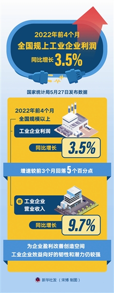 受国内疫情短期冲击及国际形势更趋复杂严峻等因素影响,我国工业经济承压明显。国家统计局27日发布数据,今年前4个月,全国规模以上工业企业利润同比增长3.5%,增速较前3个月回落5个百分点,提振工业经济运行仍需进一步加力。