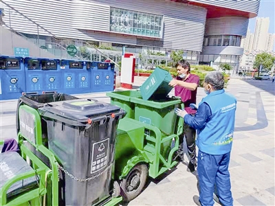 为有效解决商户餐厨垃圾分类难、清运难的问题,万科城国际公园创新提出的“餐厨垃圾巡回清运车上门回收+车车对接”模式,有效提高商户餐厨垃圾分出率,培养商户垃圾分类习惯养成。