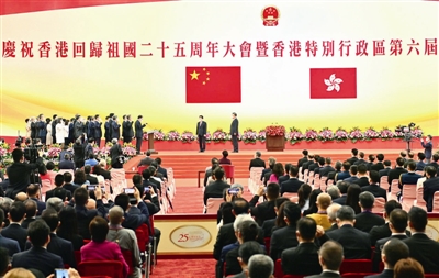 在庆祝香港回归祖国25周年的喜庆时刻,带来全国人民的热烈祝贺和美好祝愿;在香港由治及兴的关键时期,为香港长治久安和长远发展,为“一国两制”伟大事业行稳致远指明航向。
