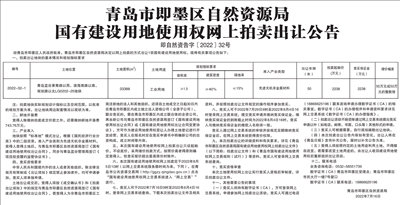 青岛市即墨区自然资源局国有建设用地使用权拟协议出让公告