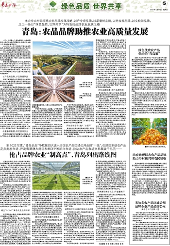 到2022年底,“青岛农品”争取第四次进入全国农产品区域公用品牌“十强”,创建国家级农产品定点批发市场,开发粤港澳大湾区和RCEP等新兴市场,拉动农产品市场交易额破千亿元——~~~