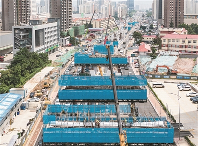 7月19日,记者在辽阳路快速路(福州路-海尔路段)工程现场看到,施工人员紧张忙碌着,工程建设正在如火如荼地推进中。据了解,辽阳路快速路(福州路-海尔路段)工程建成后,将与辽阳路(南京路-福州路段)交通结建工程衔接,组成青岛主城区重要的快速路网。 刘栋 摄