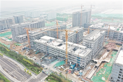 记者走进项目一期看到,5个项目单体拔地而起,4台塔吊分散其间,工人们有的在做外立面施工,有的在室内忙着安装管道,挖掘机和水泥搅拌车也在有条不紊地忙碌着,项目建设现场繁忙而有序。“项目有5个单位工程,包括门诊楼、重症病房楼以及3个附属单位——能源中心、污水处理站和洗消中心。”青岛明青健康产业管理有限公司副总经理韦学陆指着眼前的几栋高楼一一介绍,门诊楼主体结构已经通过验收,安装和精装修正在同步施工,其中安装工作已经完成了70%左右,精装修完成20%;重症病房楼一次结构、二次结构均已验收完毕,安装工作完成70%,精装修完成10%左右;3栋附属建筑主体结构也已验收完成,装修工作开始施工。