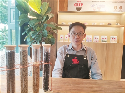 “您点的这款是使用来自哥伦比亚大嘴鸟庄园的咖啡豆制作的,口味比较均衡。您可以趁热闻一下香气,在中温时品尝口感,能感受到淡淡的回甘。”张明振将咖啡送到后,并没有马上离开,而是耐心向客人讲解品尝咖啡的方法。