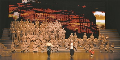 本报7月31日讯 “八一”建军节来临之际,7月27日晚,由青岛市委宣传部、青岛市退役军人事务局指导,崂山区委宣传部、崂山区文化和旅游局、崂山区退役军人事务局主办的崂山区庆“八一”“奋进新征程 建功新时代”文艺宣讲活动——红色音乐史诗·大型声乐套曲《西柏坡组歌-人间正道是沧桑》在青岛大剧院隆重上演。