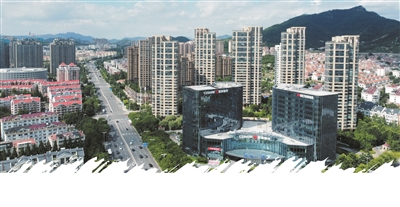 ■松岭路与香港东路交汇处,一座座商业楼宇成为支撑崂山区高质量发展的“四梁八柱”。 邢志峰 摄