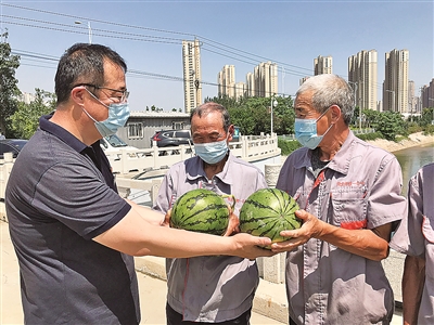 “西瓜来啦!”8月上旬,市北区城管局绿化一公司党支部为奋斗在一线的园林职工送来了甘甜的西瓜、清凉的矿泉水等,叮嘱大家要多补水,注意身体,将党支部的关怀传递给每位职工。与此同时,市北区城管局市政一公司党支部也带着清凉物资奔赴各个施工现场,为职工送去矿泉水、西瓜、绿豆、藿香正气水等解暑物品,叮嘱大家在施工中要时刻绷紧安全弦,注意自身安全,做好防暑降温。一线工作者们纷纷表示,要以高昂的工作劲头,坚持不懈战高温、抓进度、保质量、重安全,确保各项工作有序推进。