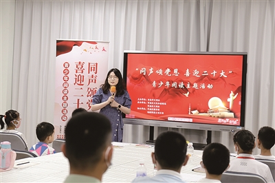 本报8月16日讯 为迎接党的二十大胜利召开,激发青少年爱国热情,培养家国情怀,今晚,由市文明办主办,市南区文化和旅游局、市南区文明办承办的青岛市“同声颂党恩 喜迎二十大”青少年阅读主题活动在市南区图书馆举办。