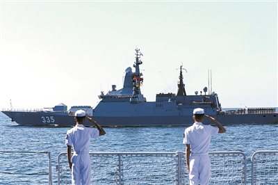 开幕式前,中方为俄“响亮”号护卫舰举行了简朴而热烈的海上欢迎仪式,并依托视讯系统进行了线上磋商及比赛科目抽签。开幕式结束后,中俄双方参赛舰围绕反恐反海盗、舰炮防空反导等科目展开了激烈角逐。