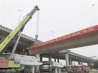 本报8月19日讯 今天11时许,伴随着一阵清脆的哨声,在唐河路-安顺路打通工程中国十七冶施工标段,李村河大桥预制箱梁首件平稳、精准地落在主线D8-D9#盖梁之上,标志着李村河大桥正式进入预制箱梁架设施工阶段。