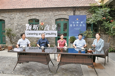 8月25日,大鲍岛文化休闲街区“北裕兴里”。由市政协委员联络活动工作室、青岛日报社、市12345政务服务便民热线和市北区政协共同打造的“容·融·通”委员区市行——“倾听与商量”走进市北协商活动在这里举行。市政协委员、青岛科技大学法学院副教授宋敏,市北区政协委员、青岛中景设计咨询股份有限公司总工程师张海滨,市北区政协委员、山东海洋发展有限公司副总经理杨磊和市北区历史城区管理委员会副主任亢啸雷围绕“城市更新建设与老城复兴”话题畅所欲言。