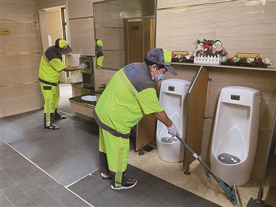 星级化管理,小公厕彰显大气质。公厕清洁程度是城市文明的尺度之一,是城市基础设施建设的重要组成部分。交运北洁公司责任辖区内共有46座公厕,24小时开放的公厕有24座,现在每天全面消杀6次,保证公厕内蹲位洁净,按时倾倒纸篓内垃圾,保持洗手池、台面、镜面洁净无水渍,定期冲刷地垫,并保障公厕周围5米范围内的环境卫生整洁,保洁工具摆放整齐,公厕保洁效果达到“六无、四净、二通”。